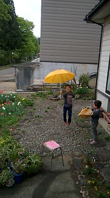 After their rainy fun, it was getting sunny again. They went to outside and played until bath time.